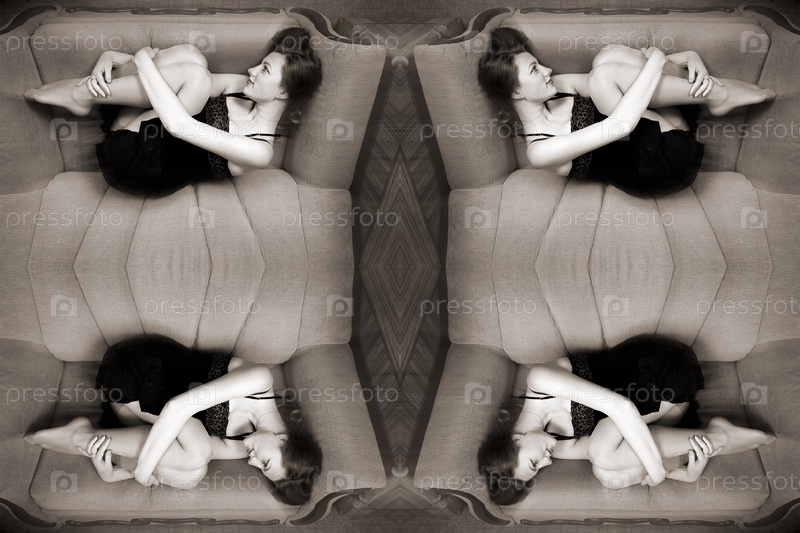 Портрет привлекательной молодой женщины, лежащей на диване