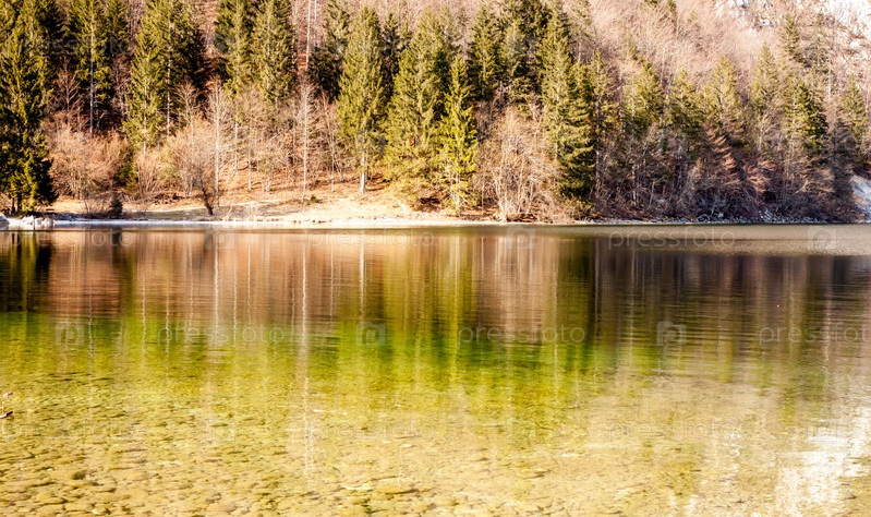 Отражение леса в поверхности озера