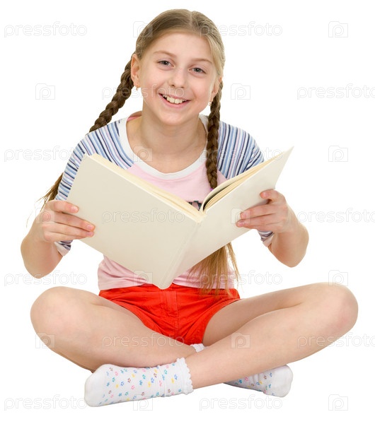 Девочка-подросток улыбается и проникает рукой в картонную коробку, изолированную на белом фоне