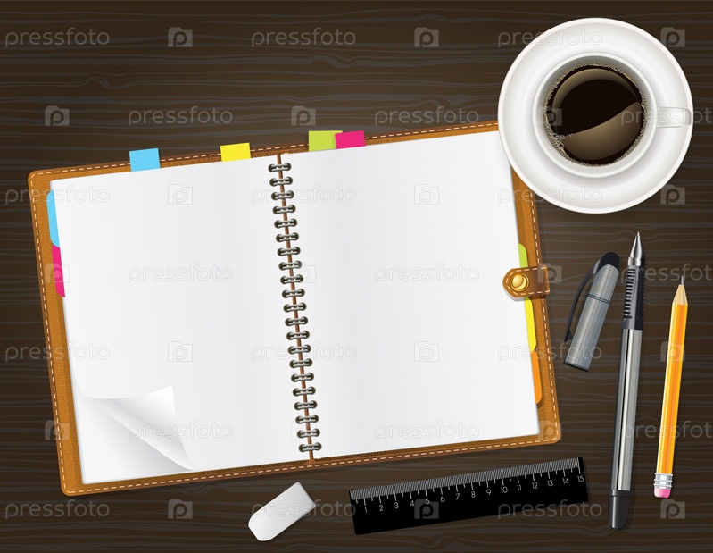 Открытый блокнот и кофе