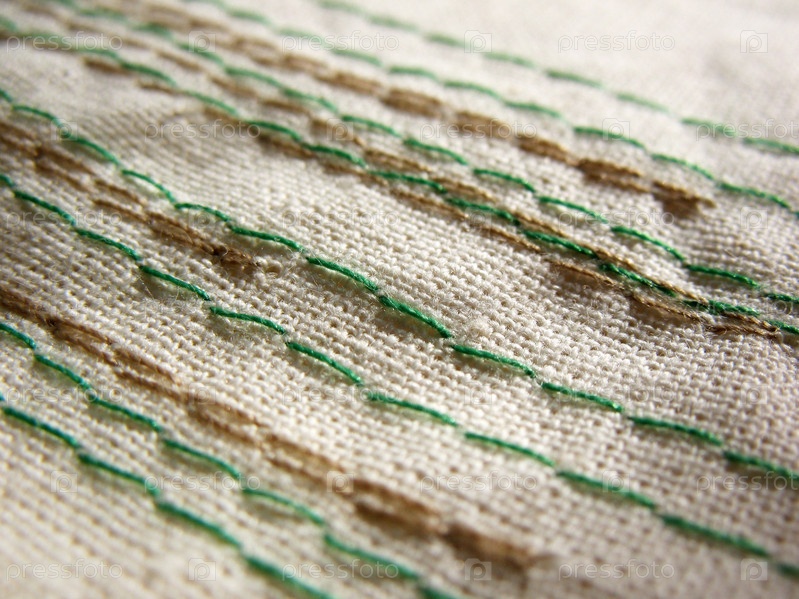 Вышитые строчки на ткани