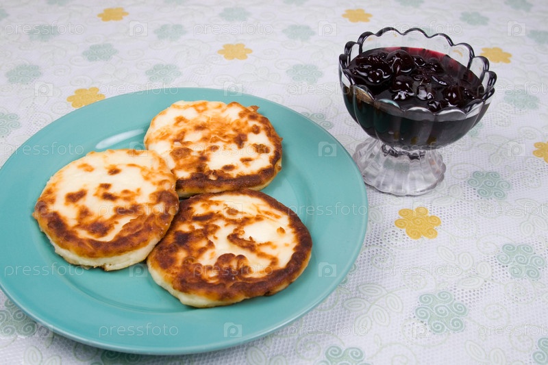 Оладьи с вареньем на столе