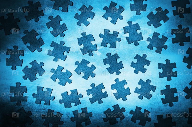 Много пазлов на голубом фон е