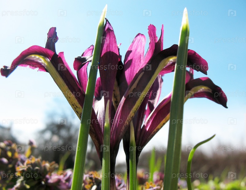 Белоцветник весенний, Leucojum vernum, на фоне голубого неба