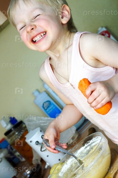 Маленький мальчик готовит еду на кухне