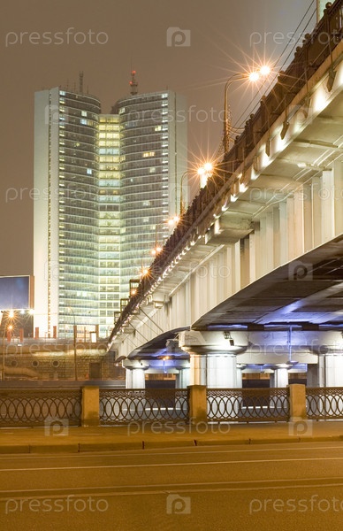 Россия. ночь Московский небоскреб и мост