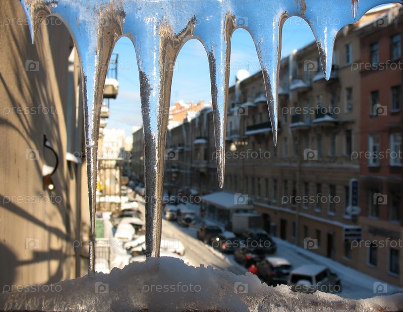 Вид на улицу Рубинштейна сквозь бахрому из сосулек. Санкт-Петербург