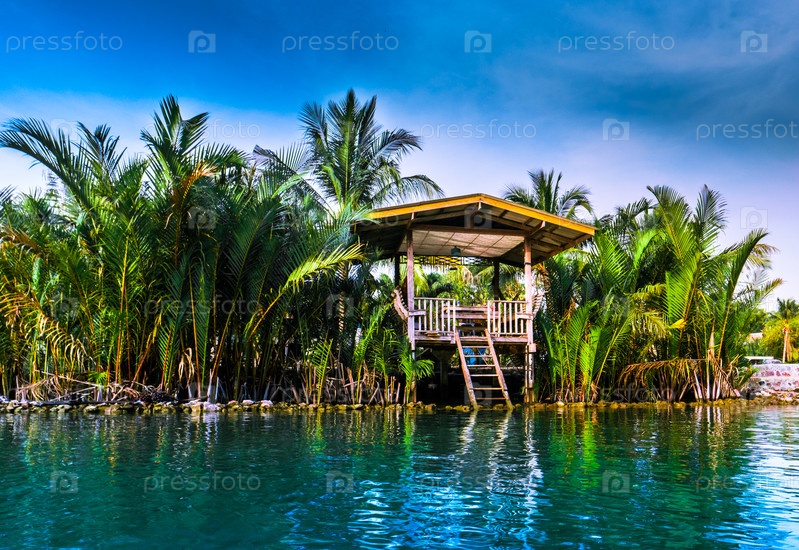 На сваях дома над рекой в сельских районах Таиланда