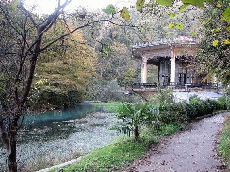 Беседка в лесу на берегу реки
