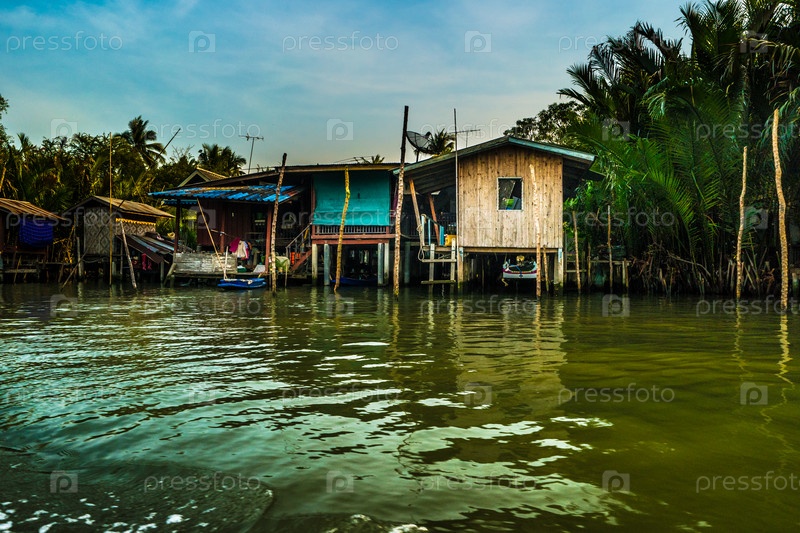Дома над рекой в сельских районах Таиланда