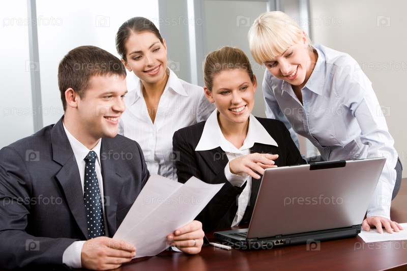 Четыре уверенных в себе профессионала сидят за столом и обсуждают новый план