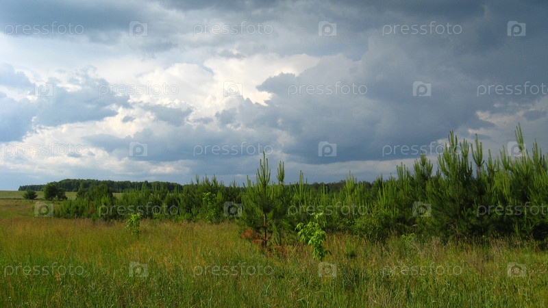 Красивый пейзаж с молодыми соснами