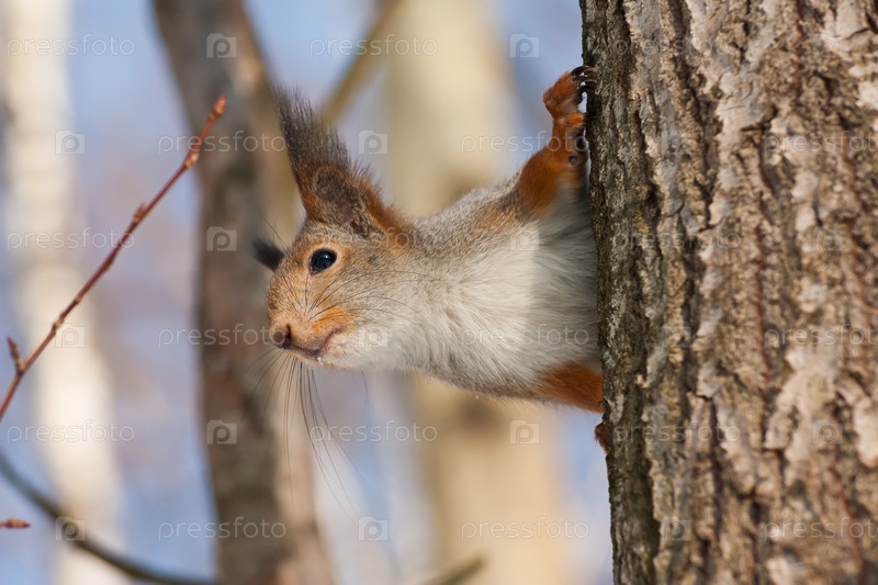 Белка, сидящвая на дереве в парке