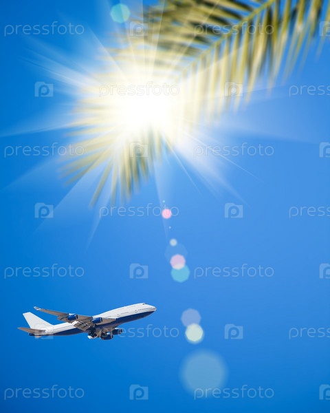 Самолет летит над морем