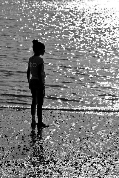 Силуэт девочки на берегу моря