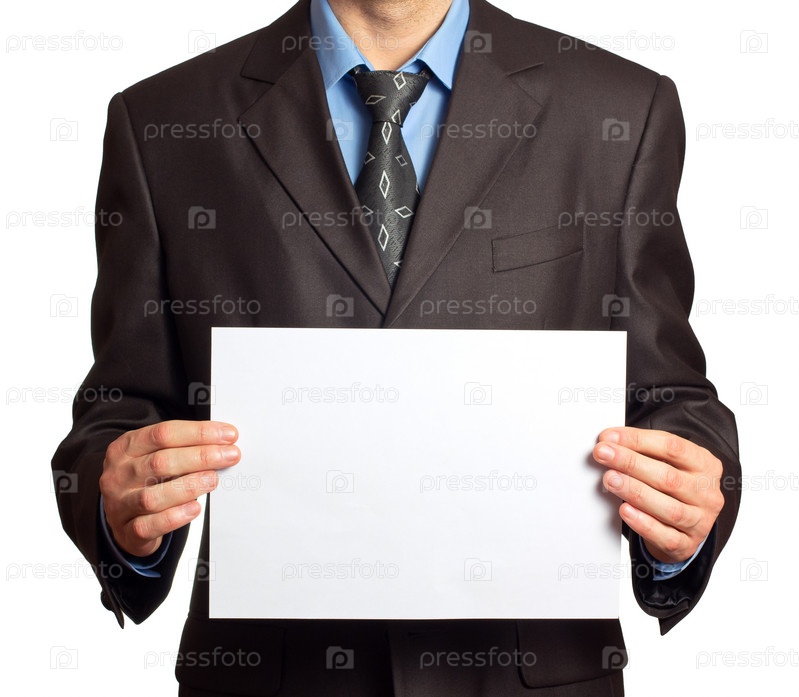 Молодой предприниматель с чистым листом, изолированный на белом фоне
