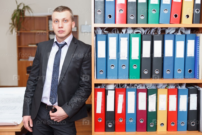 Бизнесмен возле шкафа с папками