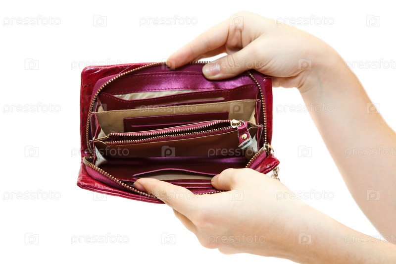 Пустой кошелек в руках на белом фоне