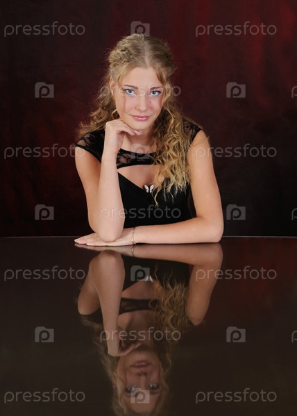 Задумчивая красивая девушка на темно-красном фоне