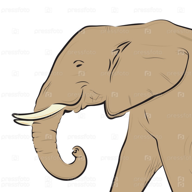 Нарисованная голова слона, изолированная на белом фоне