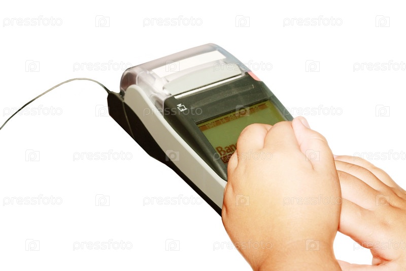 Человек вводит пин-код на терминале, прикрывая его другой рукой