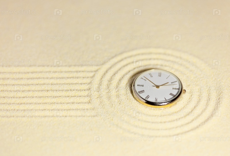 Японский каменный сад на песке с часами - миниатюрная композиция