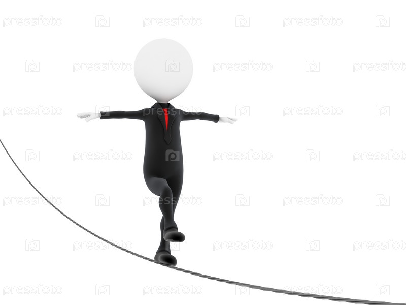 Символический бизнесмен идет по канату