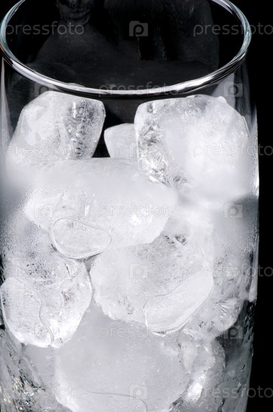 Объект на черном - кубики льда в стекле