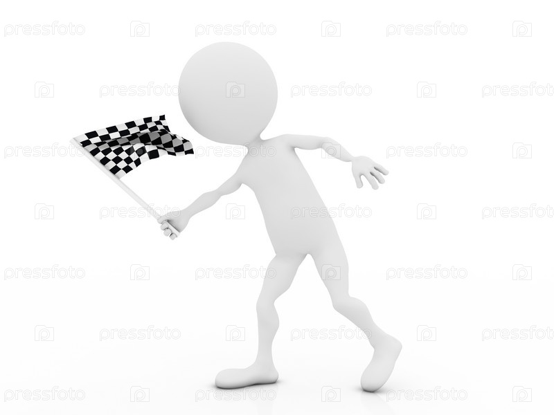 Белый человечек с гоночным флагом на белом фоне