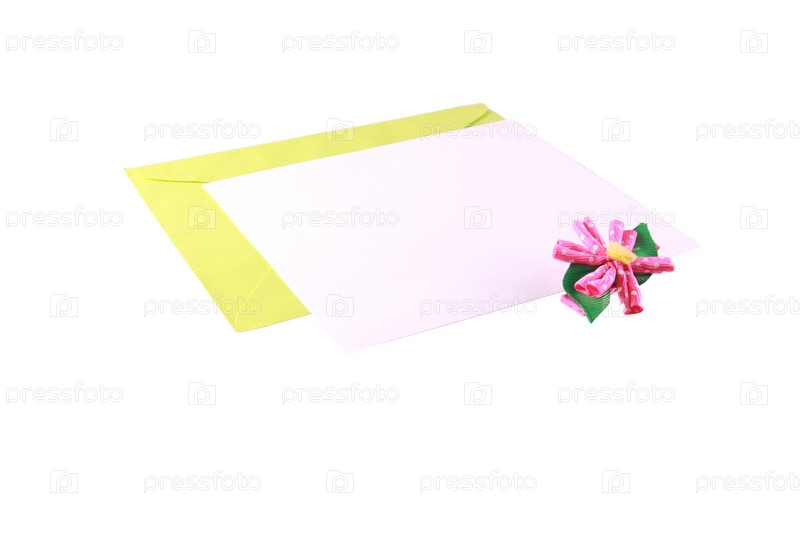 Конверт и пустая открытка на белом фоне