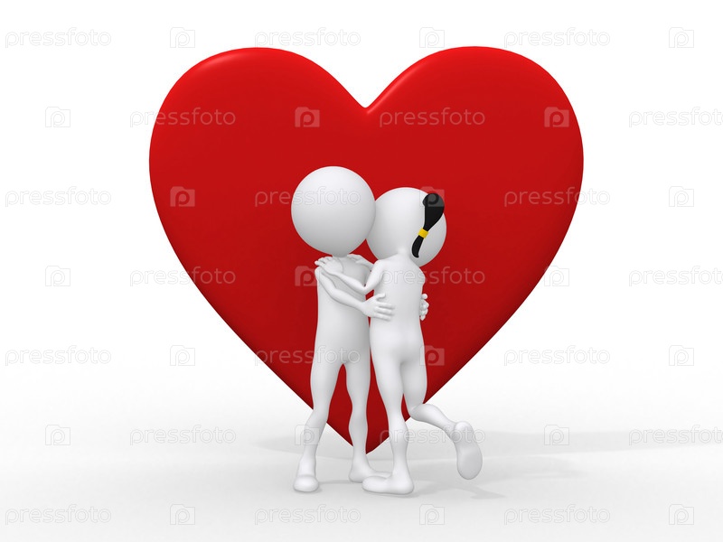 Символическая влюбленная пара на фоне красного сердца
