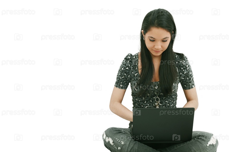 Красивая молодая студентка с ноутбуком