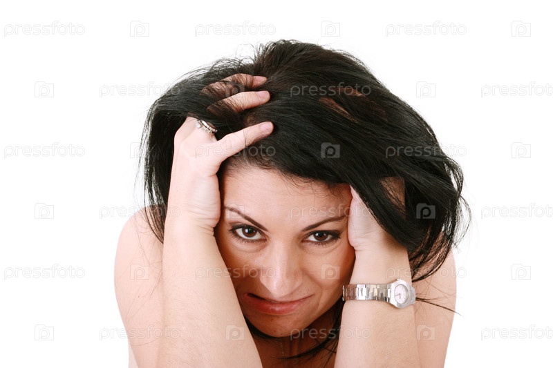 Портрет эмоциональной женщины на белом фоне