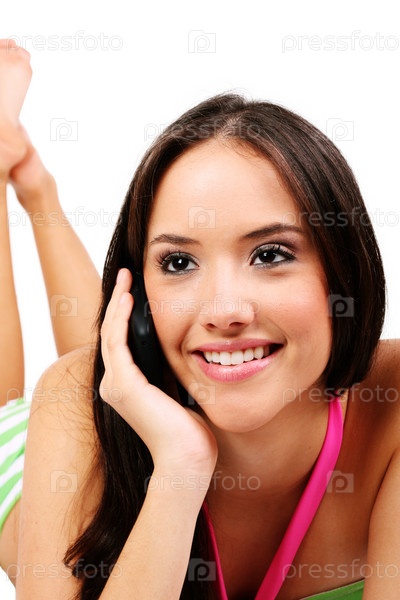 Красивая девушка разговаривает по мобильному телефону
