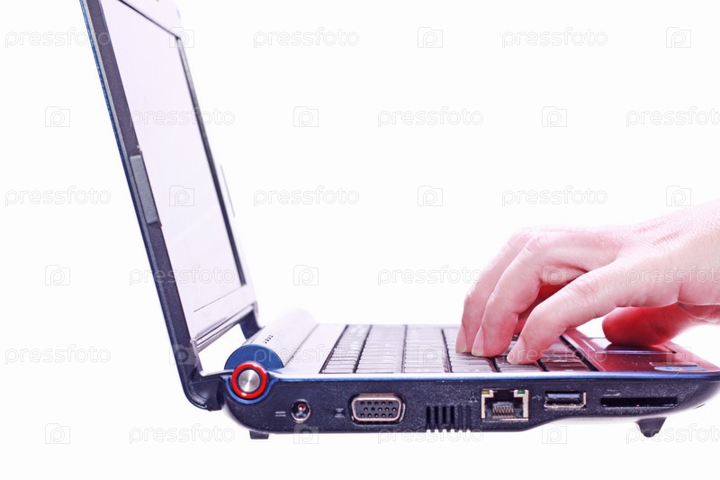 Рука на клавиатуре ноутбука. Изоляция на белом фоне