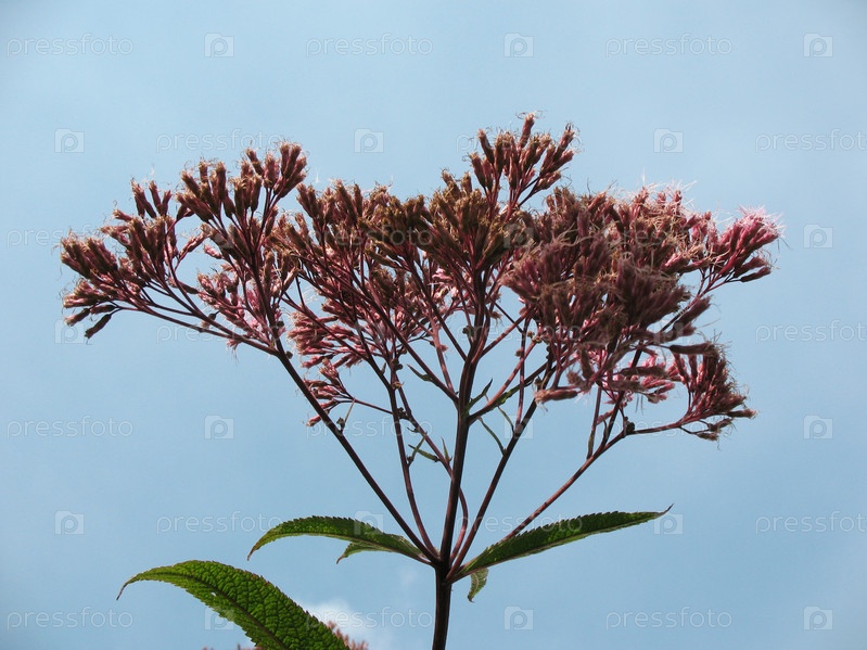 Цветящий кантрантус, centranthus, семья валерианов, на фоне неба