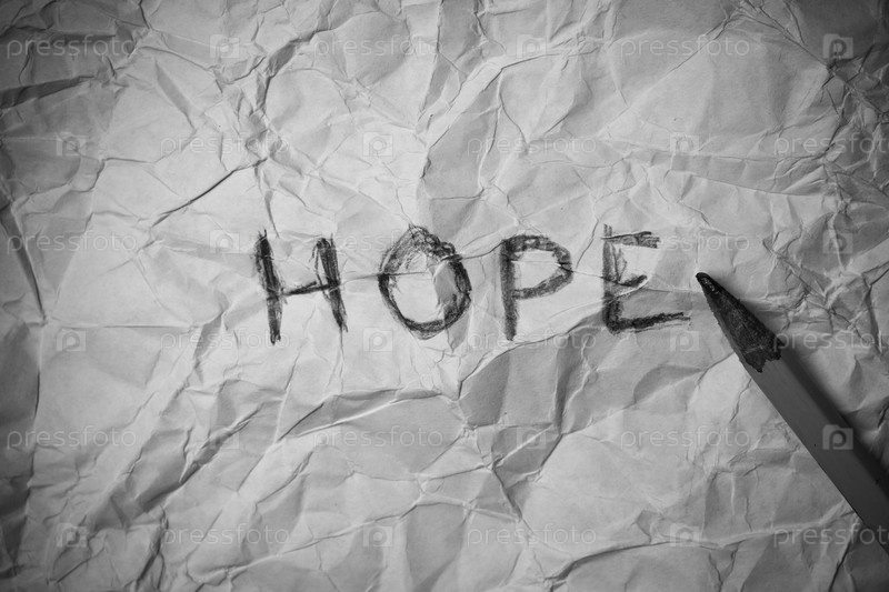Слово НАДЕЖДА на мятом белом листе бумаги