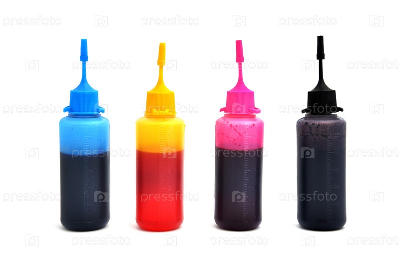Основные цвета в бутылках, изолированных на белом фоне