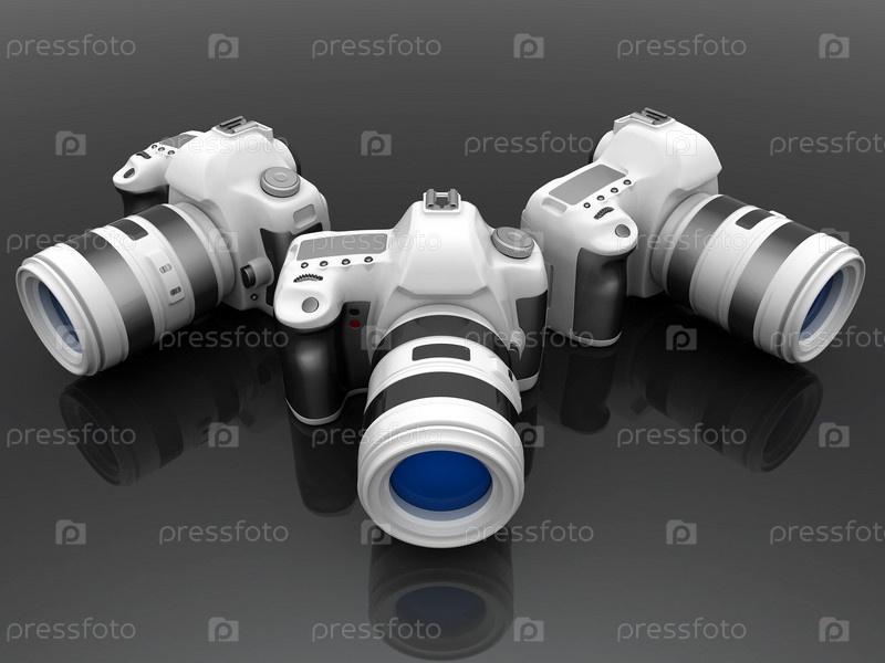 Цифровые фотоаппараты на сером фоне