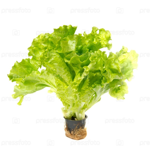 Куст зеленого салата на белом фоне