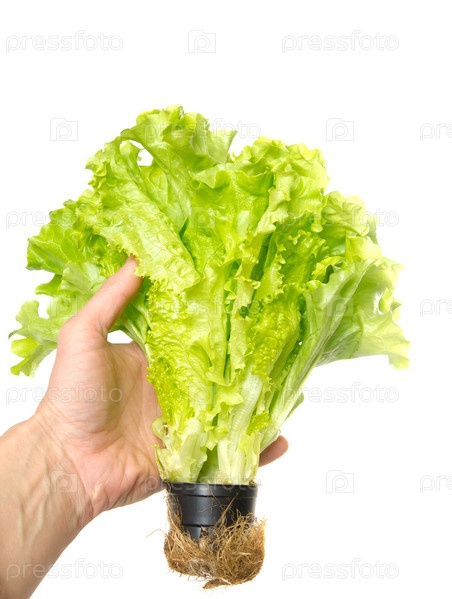 Куст зеленого салата на белом фоне