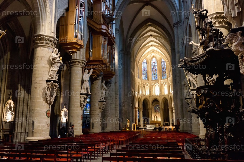 Интерьер Собора Святого Михаила и Святой Гудулы в Брюсселе, Бельгия