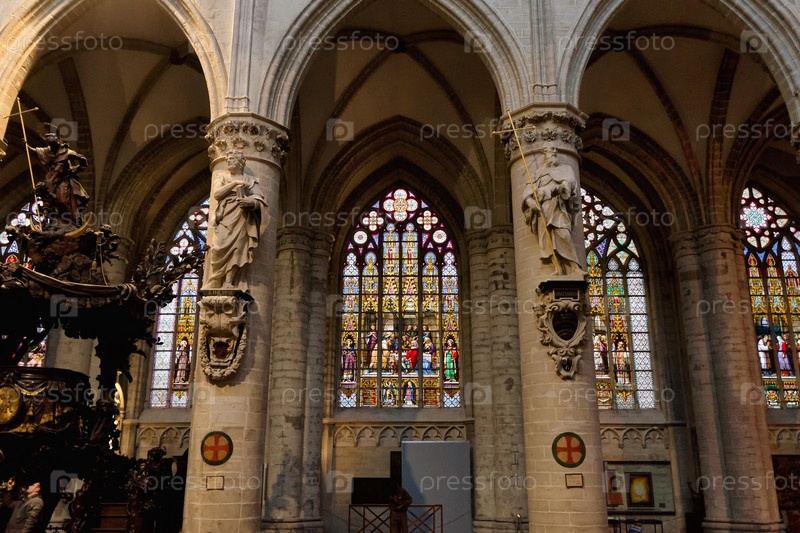 Интерьер Собора Святого Михаила и Святой Гудулы в Брюсселе, Бельгия