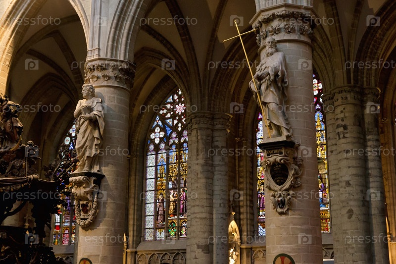 Статуи в интерьере Собора Святого Михаила и Святой Гудулы в Брюсселе, Бельгия