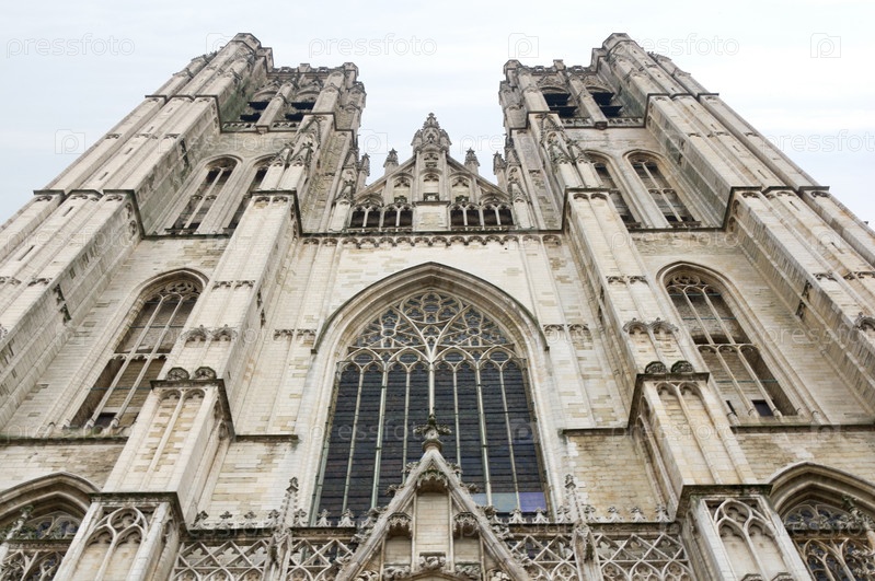 Фасад Собора Святого Михаила и Святой Гудулы в Брюсселе, Бельгия