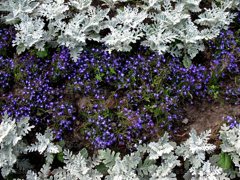 Цветочный бордюр из лобелии, lobelia erinus и крестоносца приморского, cineraria maritima