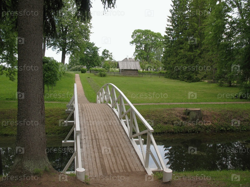 Горбатый деревянный мостик в парке усадьбы Михайловское. Музей-заповедник А.С.Пушкина