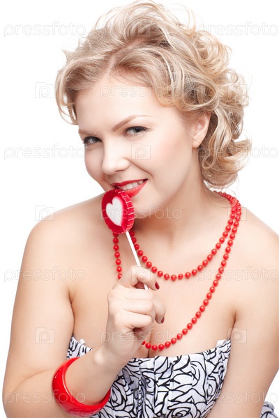 Красивая блондинка с красным леденцом
