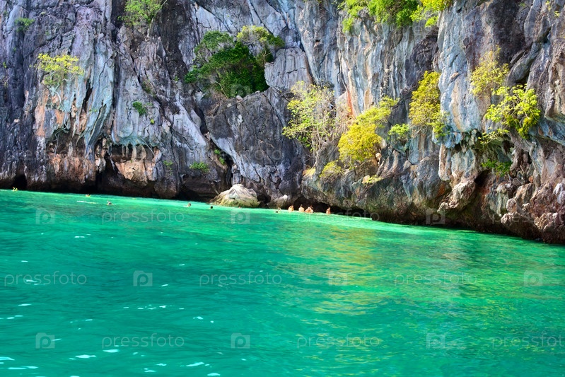 Люди занимаются подводным плаванием около пещеры Маракот в Андаманском море, Таиланд