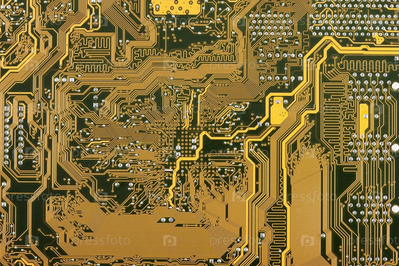 Абстрактный фон из фрагмента поверхности материнской платы золотистого цвета